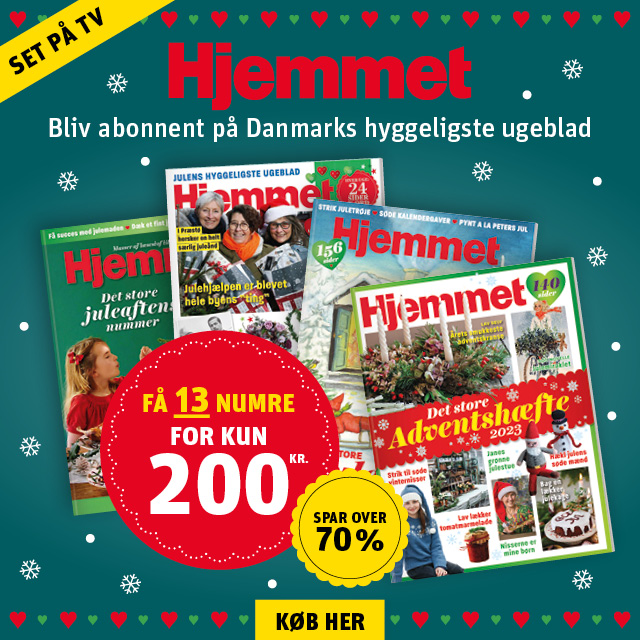 Hjemmet er Danmarks hyggeligste ugeblad med masser af underholdning for hele familien. Hver uge får du glade og hyggelige artikler, spændende romaner og noveller, et væld af lækre madopskrifter og populære brevkasser med svar fra Hjemmets dygtige fagfolk. Du kan også glæde dig til Danmarks bedste tv-blad og 24 sider kryds- og tværsopgaver.